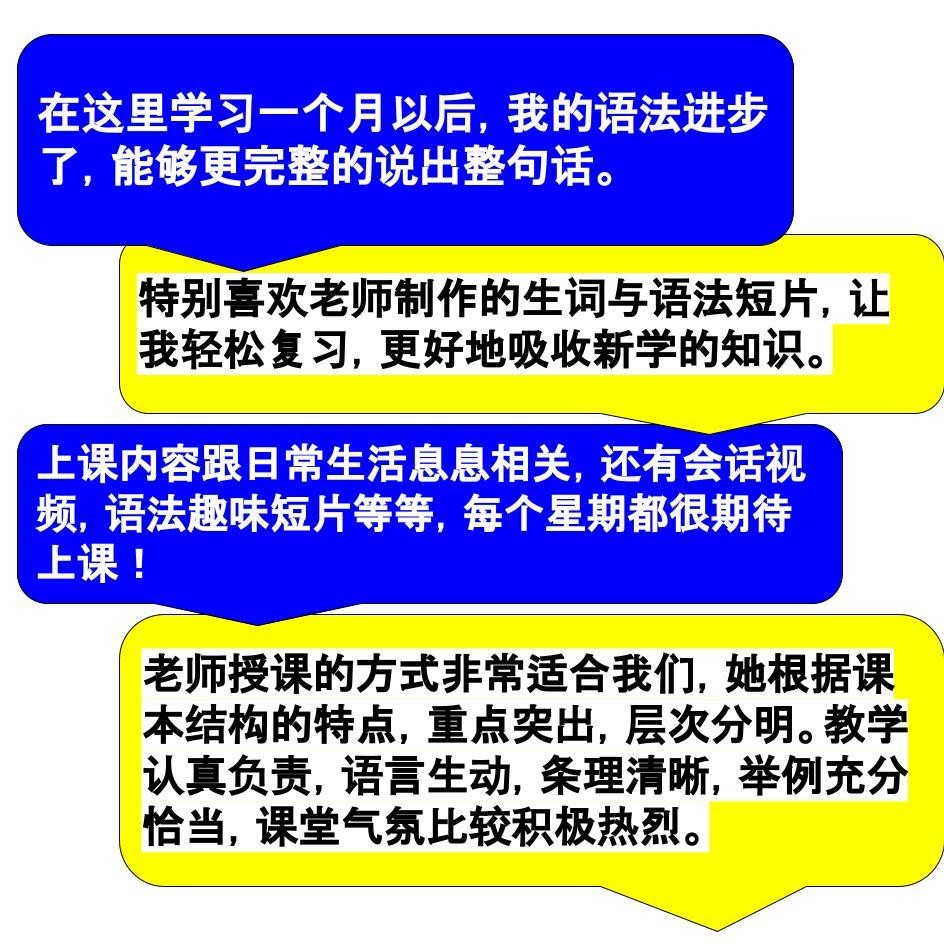 特别喜欢老师制作的生词与语法短片,让我轻松复习,更好地吸收新学的知识。"